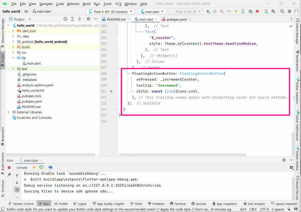 먼저 main.dart 파일을 열어주세요.