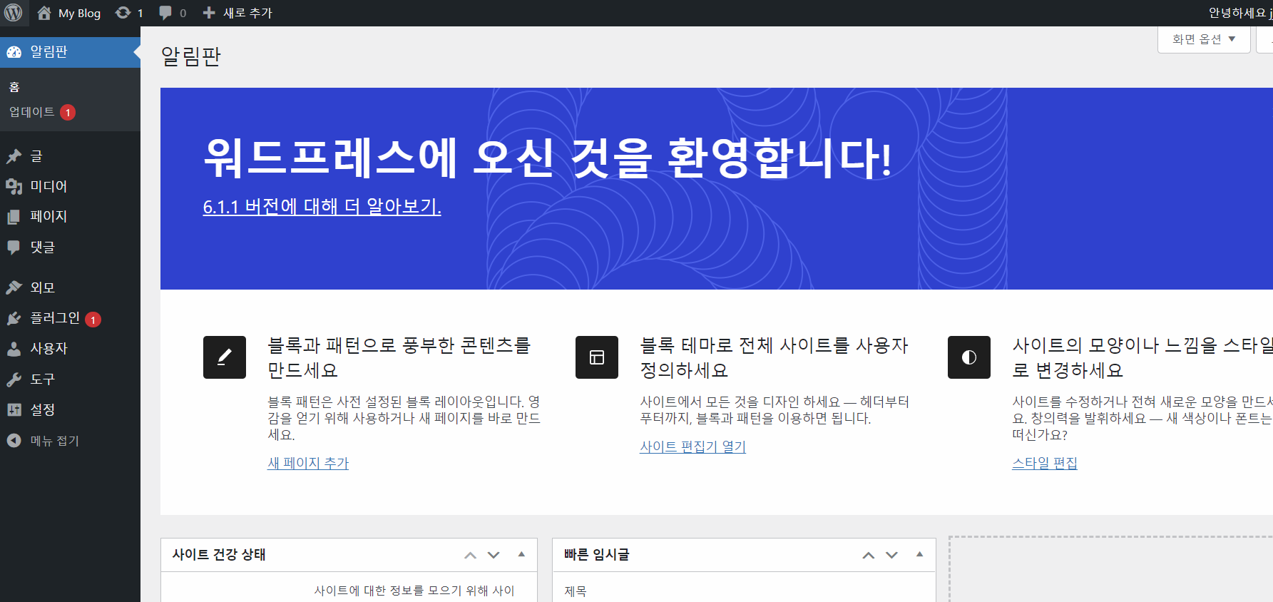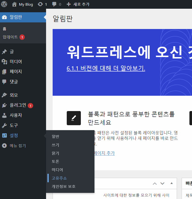 여기까지 워드프레스 설치하고 고유주소를 변경하는 과정을 모두 마쳤습니다.
