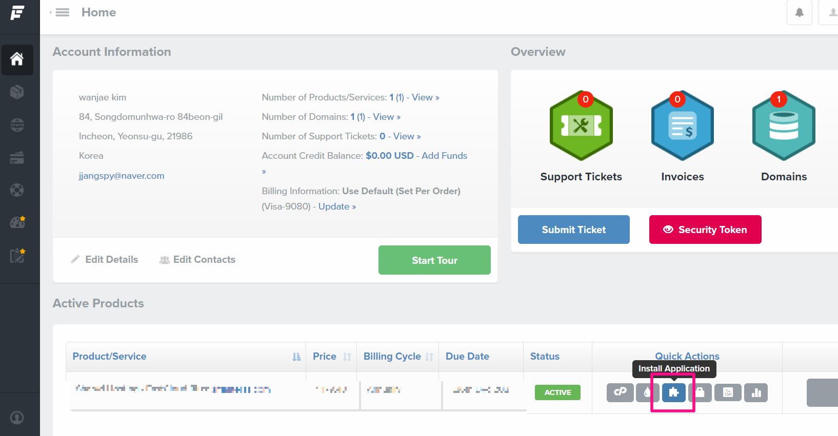 우선 다시 Fastcomet 사이트로 돌아와서 왼쪽에 홈 아이콘을 클릭해 주세요.