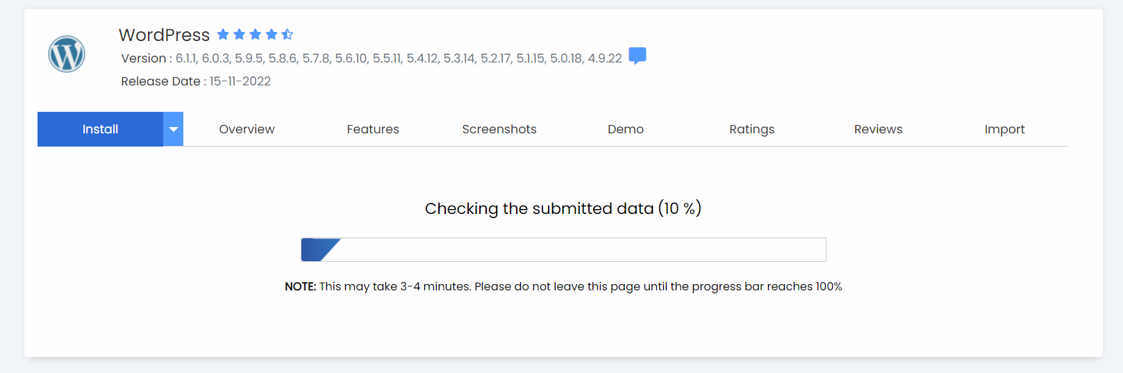 워드프레스 설치 진행중입니다. 금새 설치가 되더라구요 조금만 기다려 주세요.