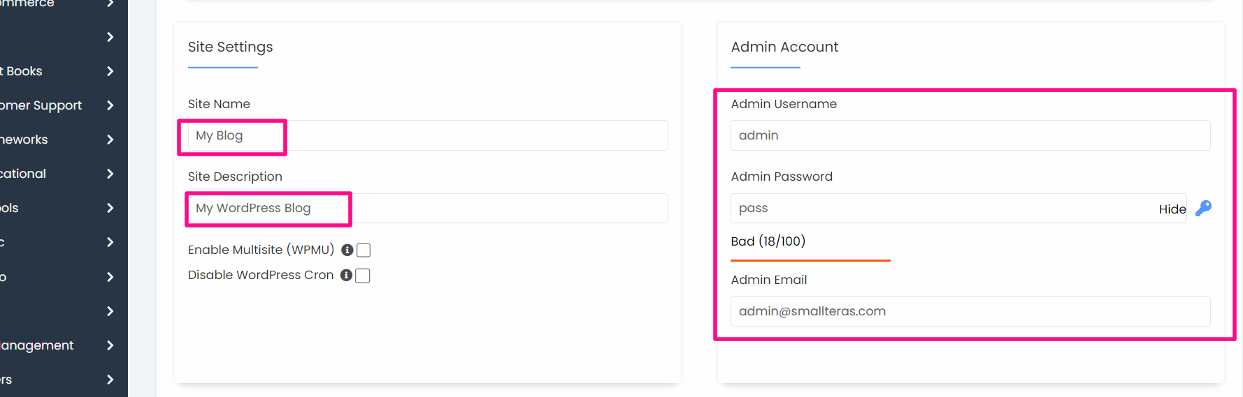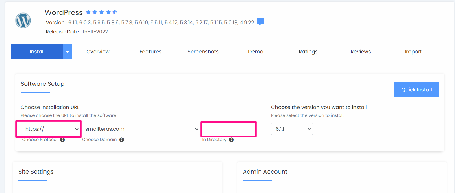 그리고 오른쪽에 관리자 계정정보(Admin Account) 를 입력할 차례입니다.